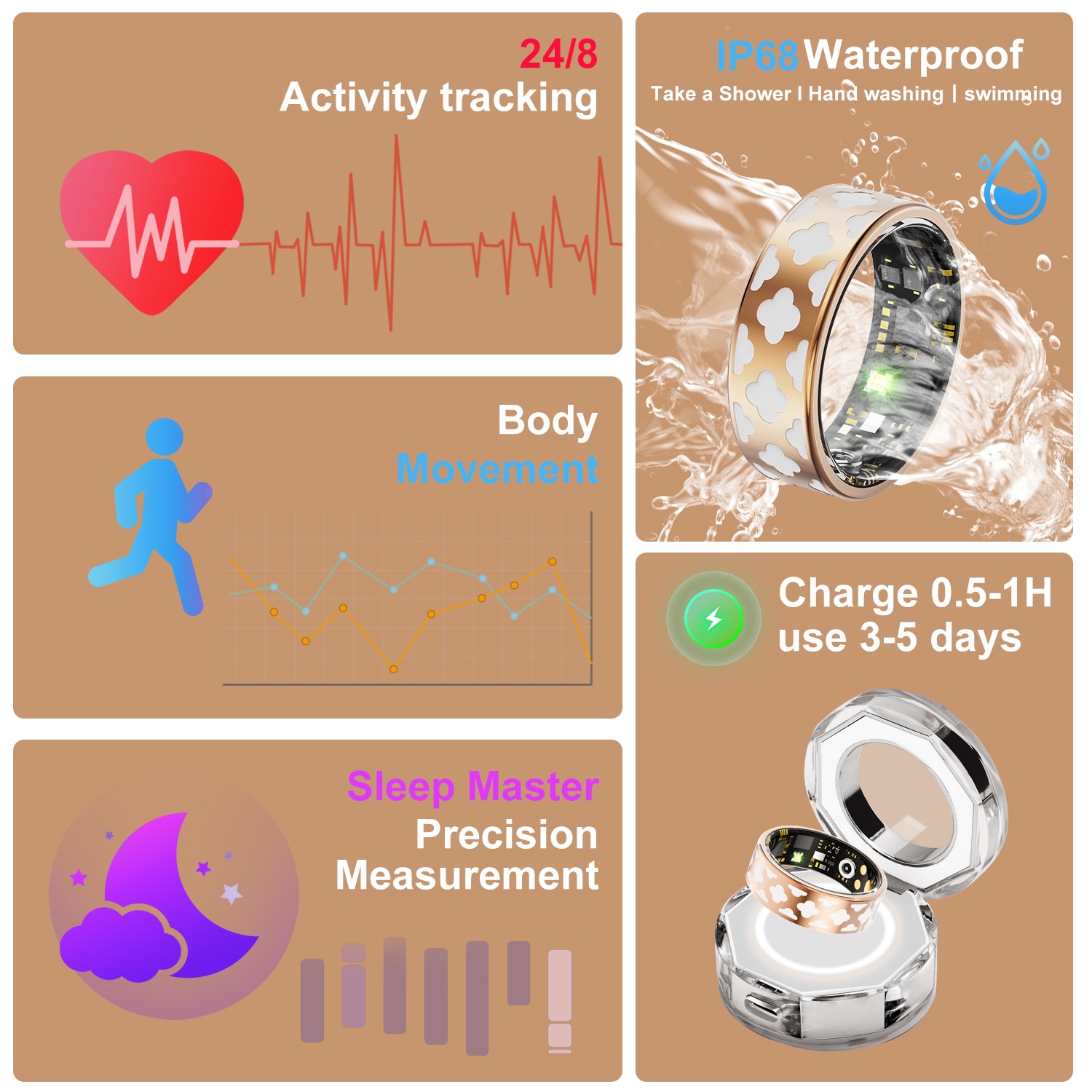 Home » Parduotuvė » R10M Smart Ring Health Tracker for Women Men Fitness/Sleep/Stress/HR Tracker with Steps Distance Calorie Count Steel Case Material